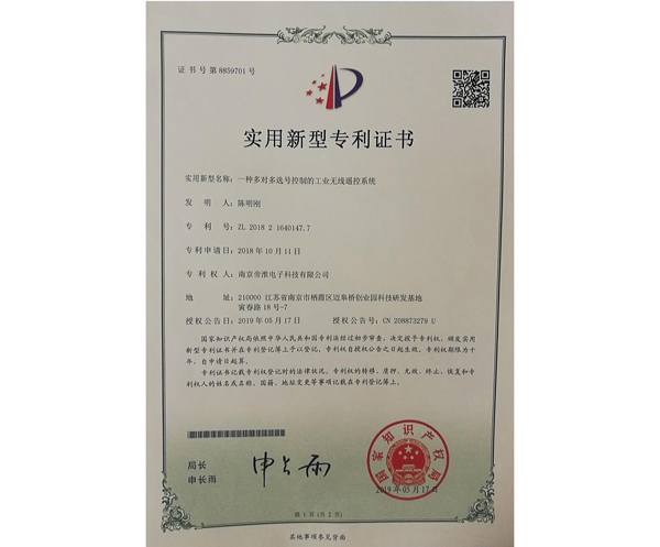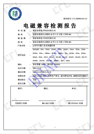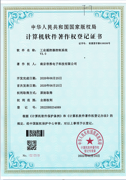 南京帝淮电子科技有限公司,国内工业遥控器行业领军企业,自主研发、定制、非标设计各类工业级无线遥控器、工业级有线控制器、智能化自主算法逻辑的本地控制器等系列产品。已经申请及正在申请的技术专利、外观专利有近三十项左右,并通过了CE欧盟认证、国家级试验检验报告、EMC电磁兼容认证等。